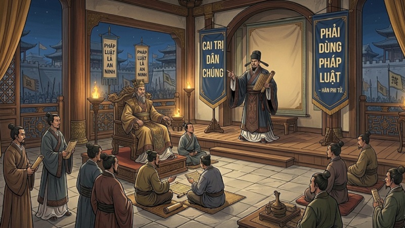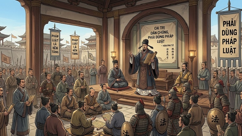Án pháp dĩ trị chúng (dựa vào pháp luật để cai trị số đông). Thay vì dùng lòng tốt hay đạo đức - thứ vốn thay đổi theo tư lợi, nhà cầm quyền phải dùng Pháp luật làm thước đo chuẩn mực duy nhất để quản lý số đông. Khi pháp luật nghiêm minh và công khai, những kẻ có ý đồ xấu sẽ không có kẽ hở để trục lợi cá nhân.