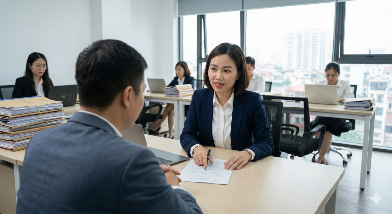 Nhân viên kinh doanh: "Để khắc phục triệt để, em sẽ tổng hợp lại các rủi ro này gửi cho Luật sư. Bên em sẽ có phương án 'trám' ngay các lỗ hổng này cho Anh/Chị."
