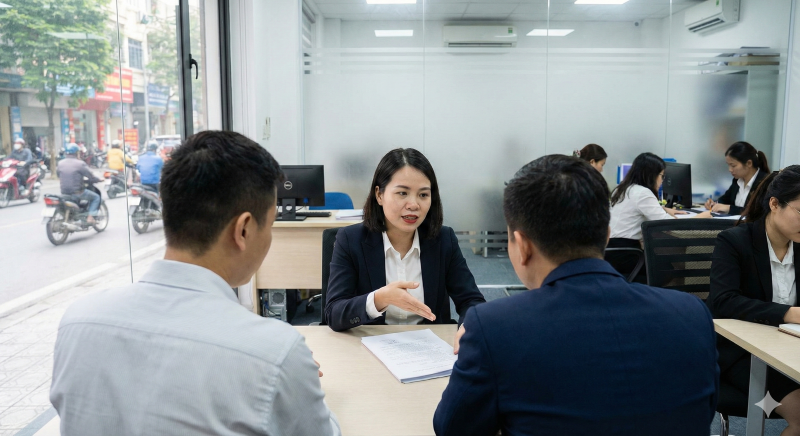 Nhân viên kinh doanh: "Để có phương án chi tiết nhất, em xin phép đặt lịch cho Anh/Chị làm việc trực tiếp với Luật sư trưởng vào [Thời gian]. Trước buổi hẹn, em sẽ gửi cam kết bảo mật thông tin để mình yên tâm gửi hồ sơ cho bên em nghiên cứu trước ạ."